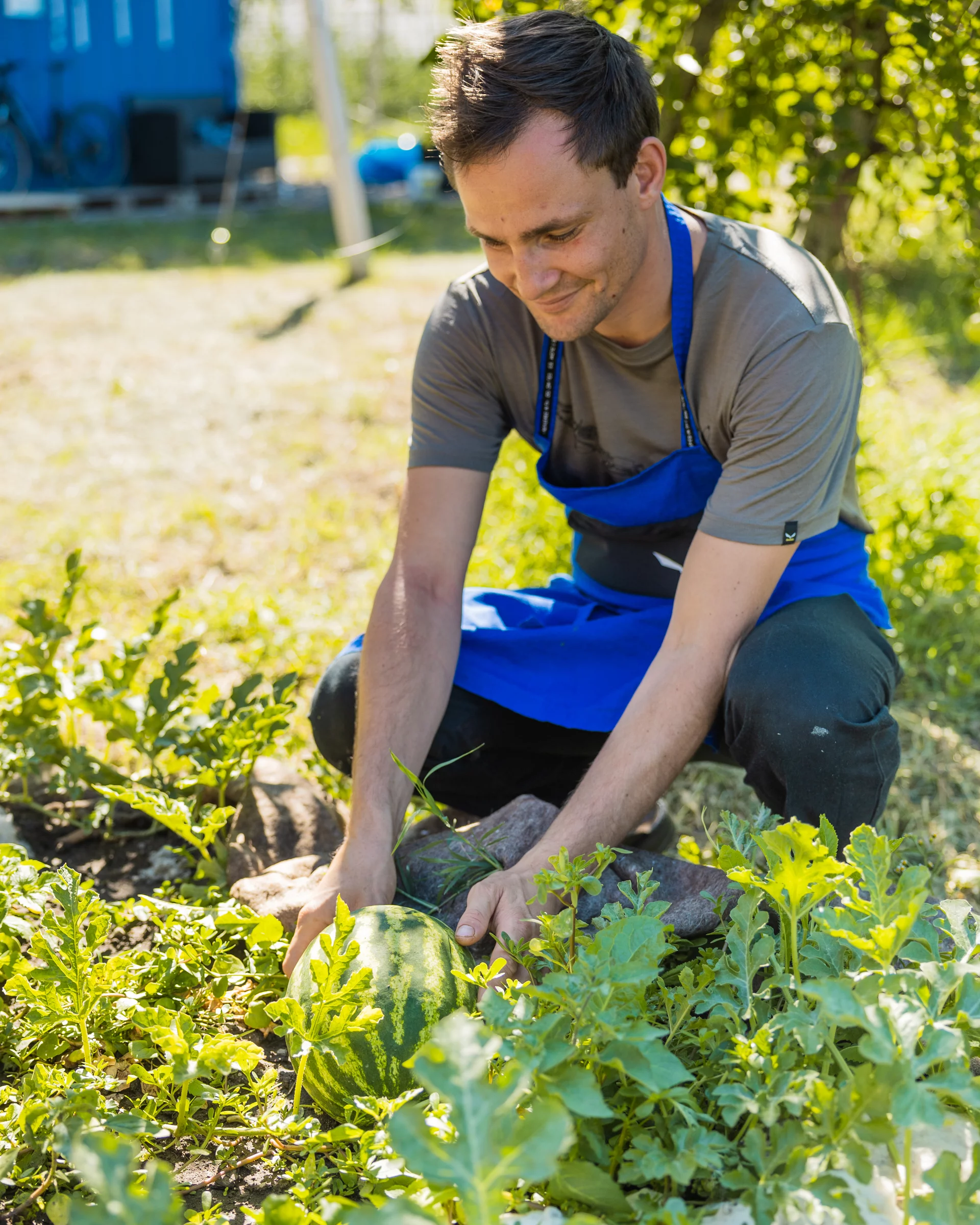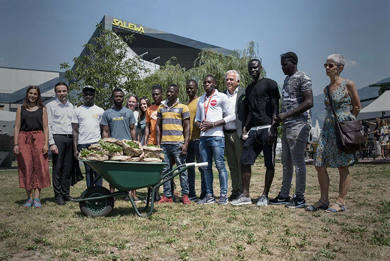 Der Salewa-Garten ist eine wichtige Ressource für unsere Küche und gleichzeitig ein Sozialprojekt, das einer Gruppe von Migranten eine sinnvolle Form der Beschäftigung ermöglicht. Der Garten wird von rund 15 Migranten aus den umliegenden Aufnahmezentren gepflegt, die von freiwilligen Helfern und Salewa-Mitarbeiter*Innen begleitet werden. Die Teilnehmer*Innen lernen die Grundlagen des ökologischen Landbaus kennen und bieten ihre Produkte zweimal wöchentlich auf einem Marktstand an. Der Erlös kommt den am Programm teilnehmenden Flüchtlingen zugute.